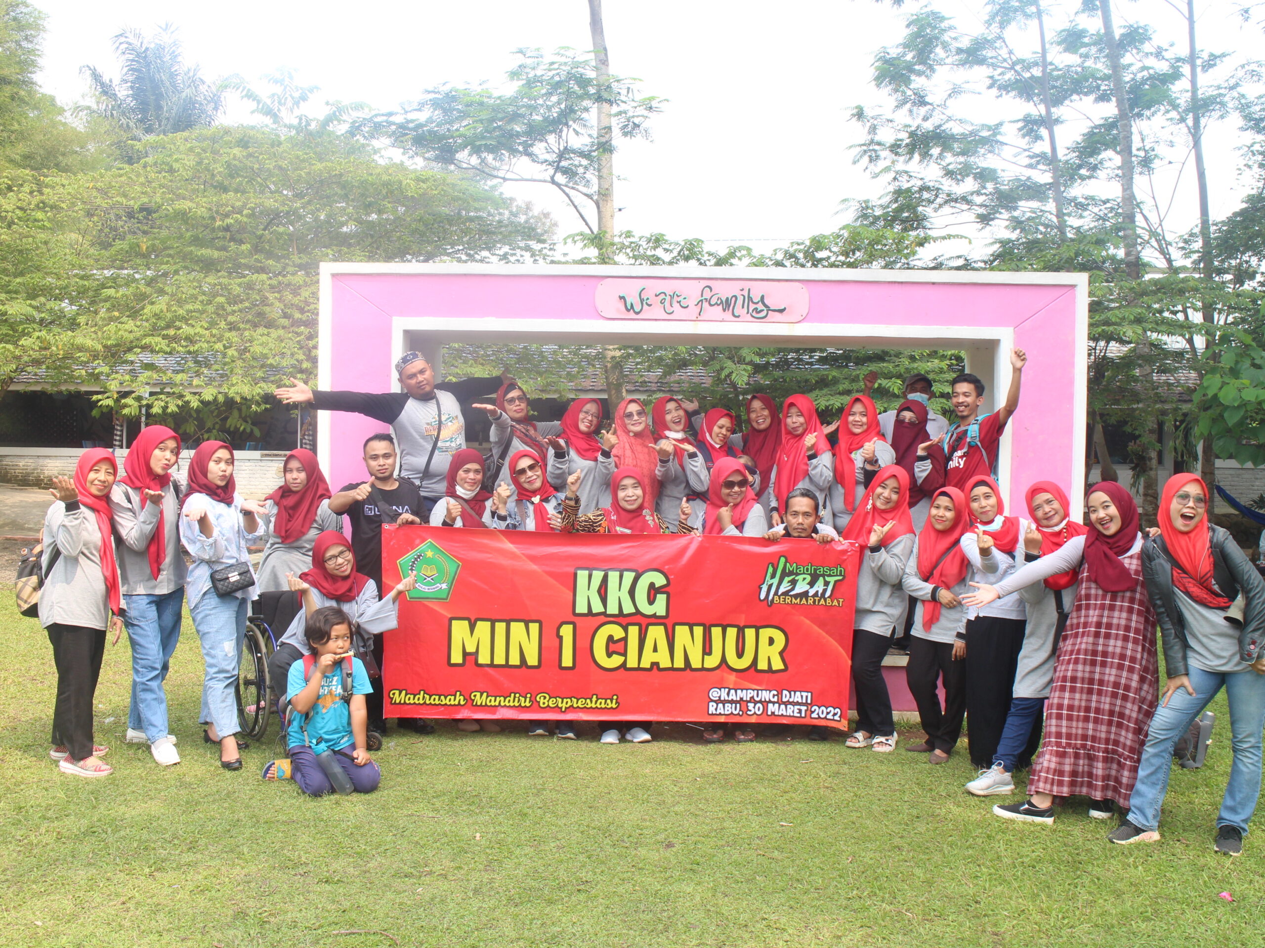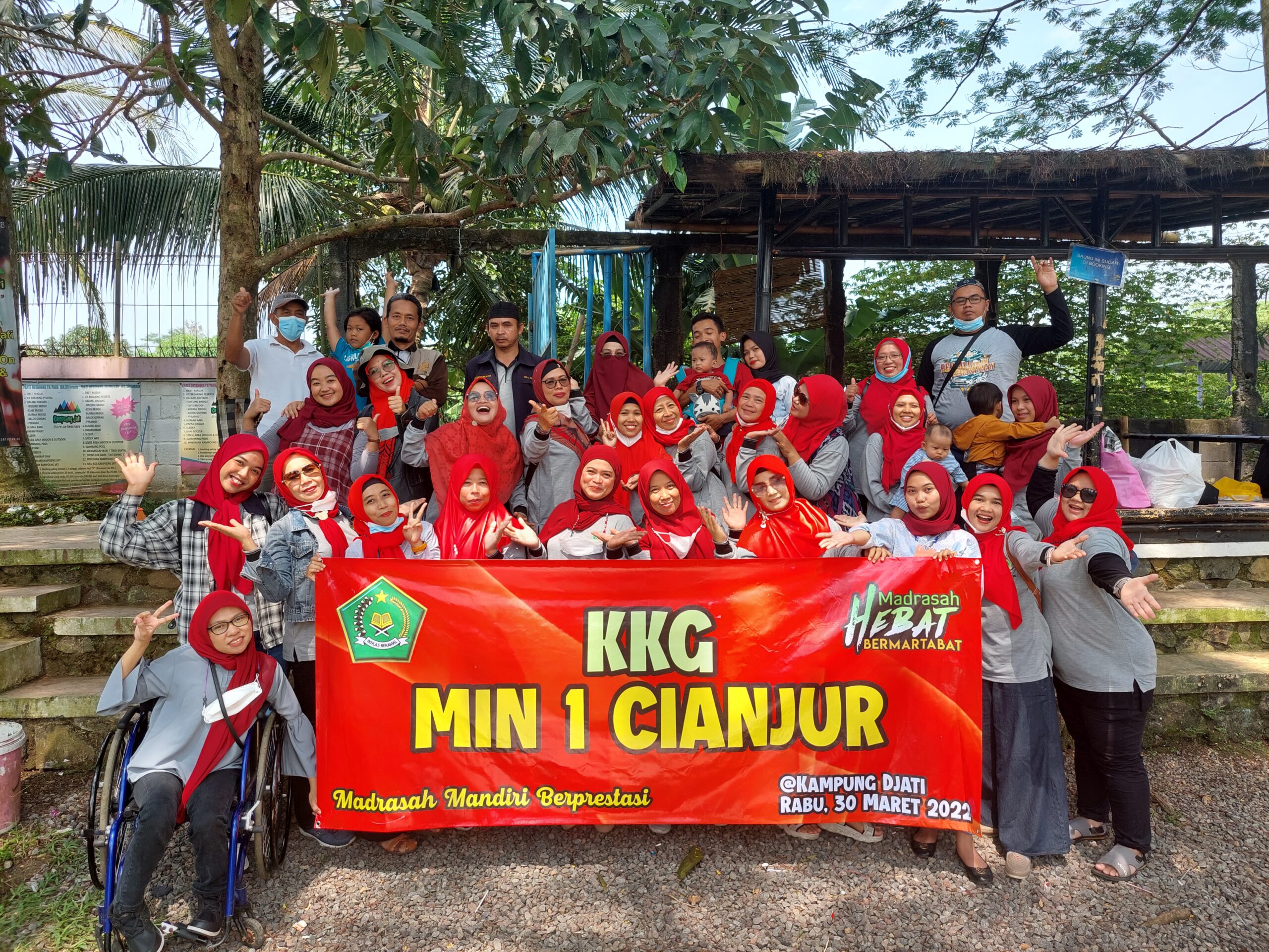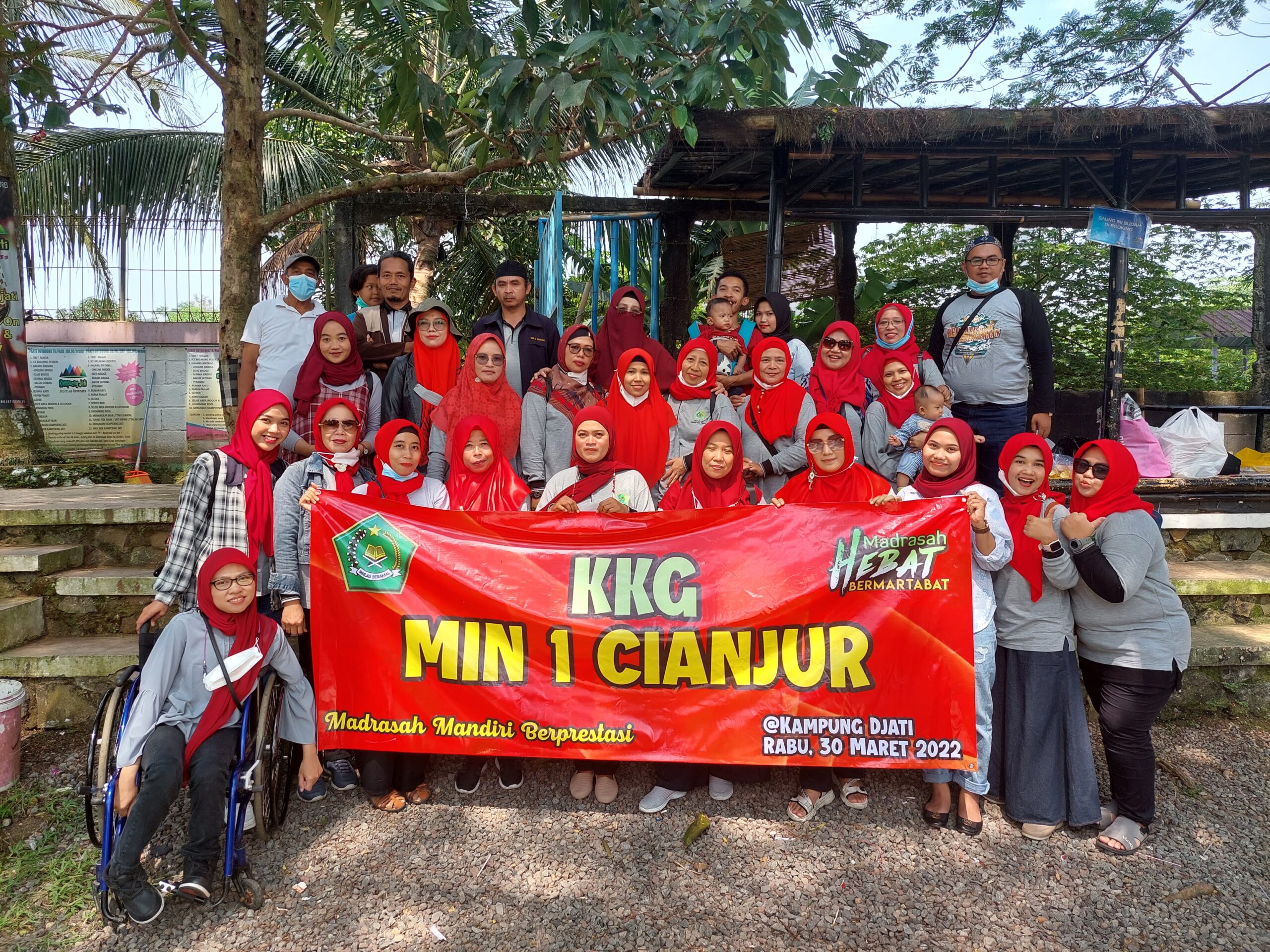 MIN 1 Cianjur menggelar kegiatan Kelompok Kerja Guru (KKG) sekaligus refreshing di Kampoeng Jati. Kegiatan ini dihadiri oleh Kepala MIN 1 Cianjur, Ibu Hj. Dini Nurdiani, S.Ag., M.M.Pd., dewan guru, dan staf tata usaha. Acara berjalan lancar dan menyenangkan dengan tetap mematuhi protokol kesehatan.